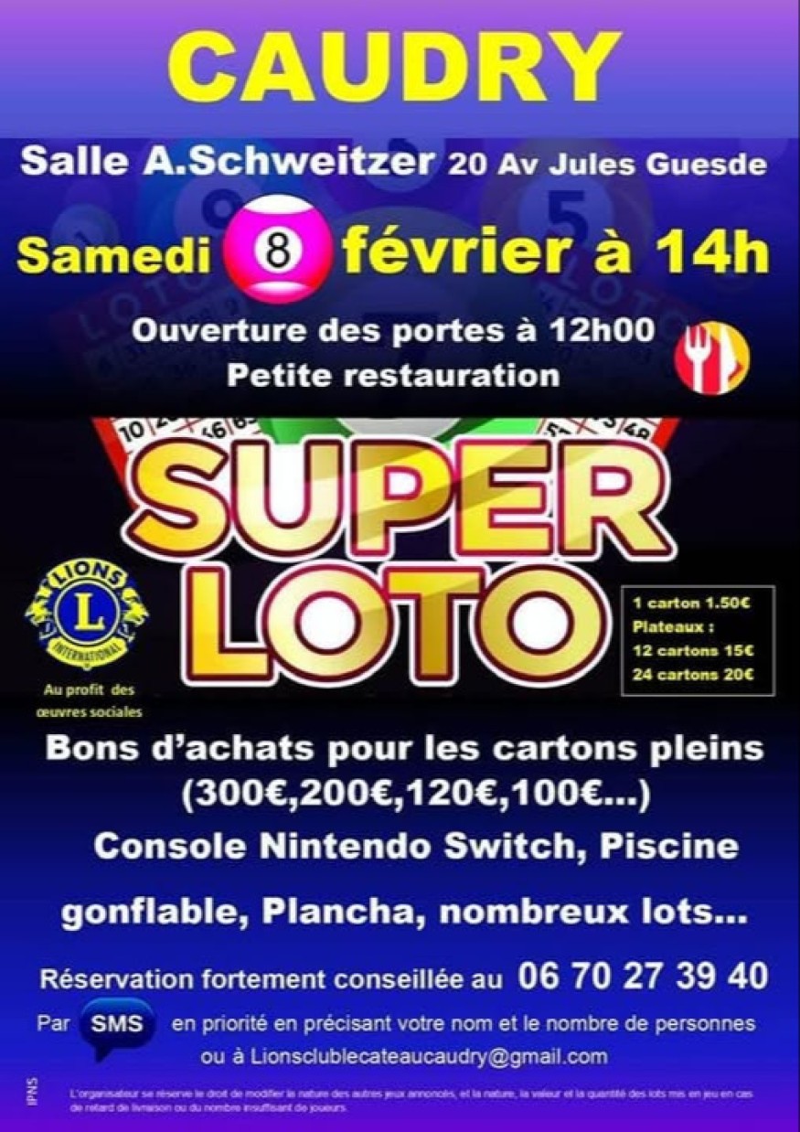 Le Lions Club Le Cateau Caudry Organise un Super Loto à Caudry