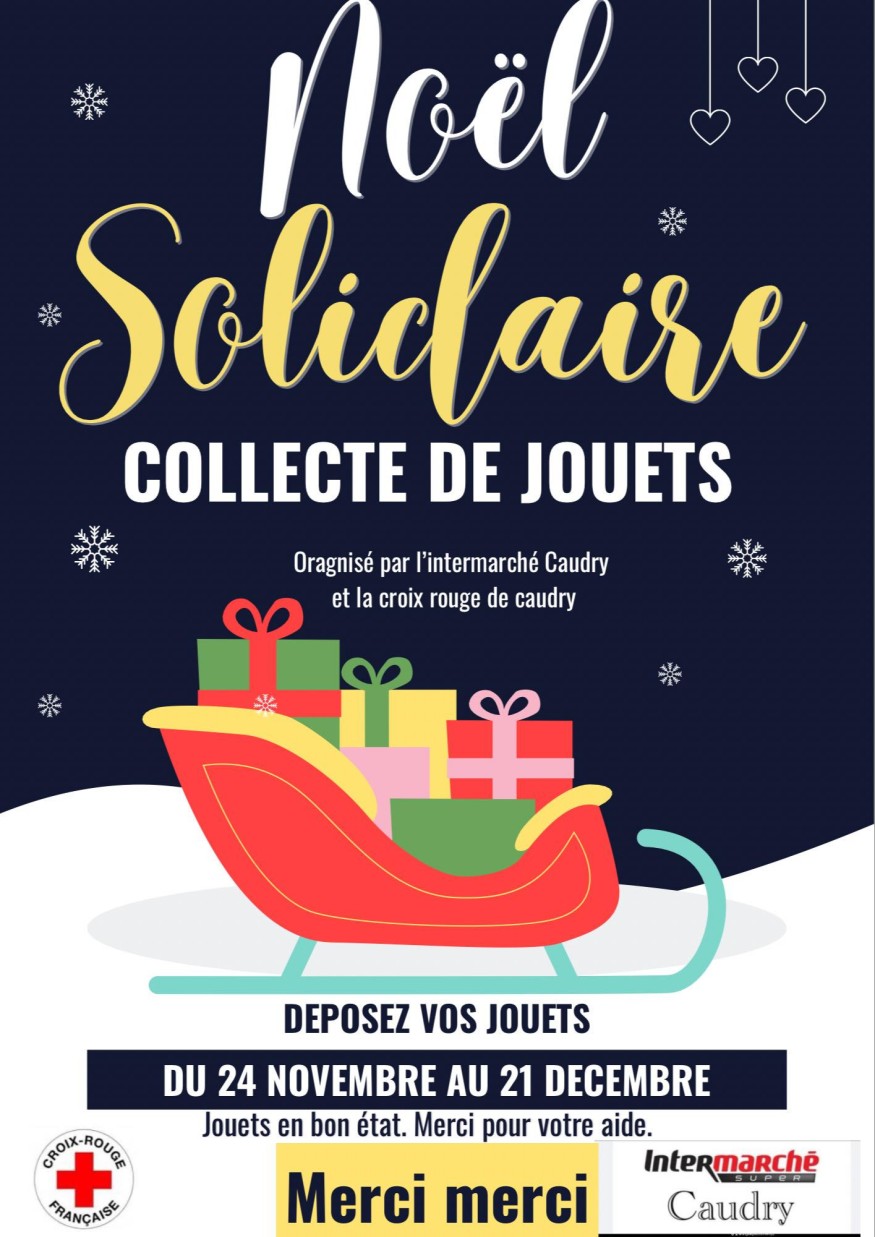 Un Noël solidaire et social à Intermarché CaudryIntermarché Caudry renouvelle cette année son opération de collecte de jouets au profit de la Croix-Rouge.Tous les jouets peuvent être déposés à l’entrée du magasin ; ils seront ensuite redistribués aux enfants bénéficiaires de la Croix-Rouge de Caudry lors des prochaines distributions alimentaires.Un enfant, un cadeau, un sourire : telle est la devise partagée par Intermarché et la Croix-Rouge de Caudry.L’an dernier, pour la première édition, cette opération a connu un véritable succès.Faisons de cette seconde édition une nouvelle réussite, pour offrir encore plus de sourires aux enfants.La hôte du père noël sera mise à disposition devant le sapin de Noël pour y mettre les jouets d’Intermarché Caudry.Merci pour votre générosité.Merci pour les enfants.Ensemble, faisons naître la joie.