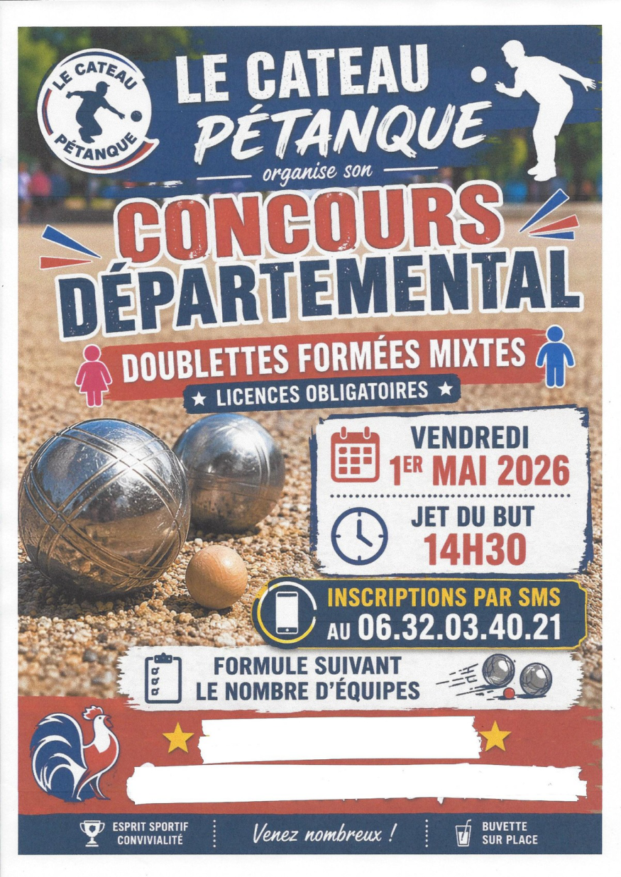 Le club « Le Cateau Pétanque » s’apprête à faire vibrer le boulodrome à l’occasion de la fête du travail. Le vendredi 1er mai 2026, l’association organise son grand Concours Départemental, un rendez-vous incontournable pour les passionnés de la discipline.
