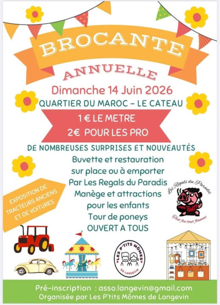 Avis aux chineurs et aux amateurs de sorties conviviales ! L'association « Les P'tits Mômes de Langevin » organise sa grande brocante annuelle le dimanche 14 juin 2026. Entre bonnes affaires, exposition de véhicules anciens et animations familiales, la journée s'annonce riche en surprises.