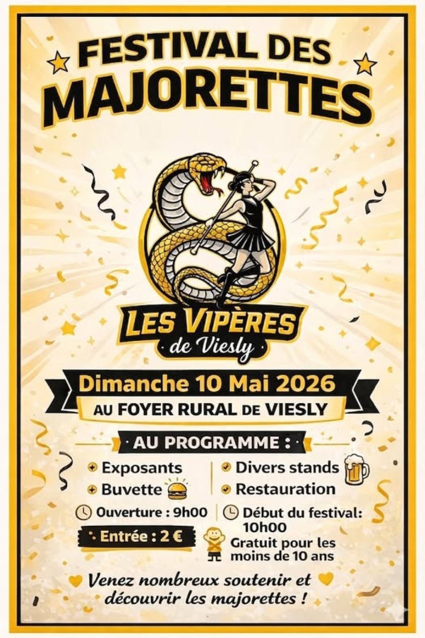 Le dimanche 10 mai 2026, la commune de Viesly vibrera au rythme des bâtons et des chorégraphies à l'occasion du grand "Festival des Majorettes", organisé par la troupe locale "Les Vipères de Viesly".