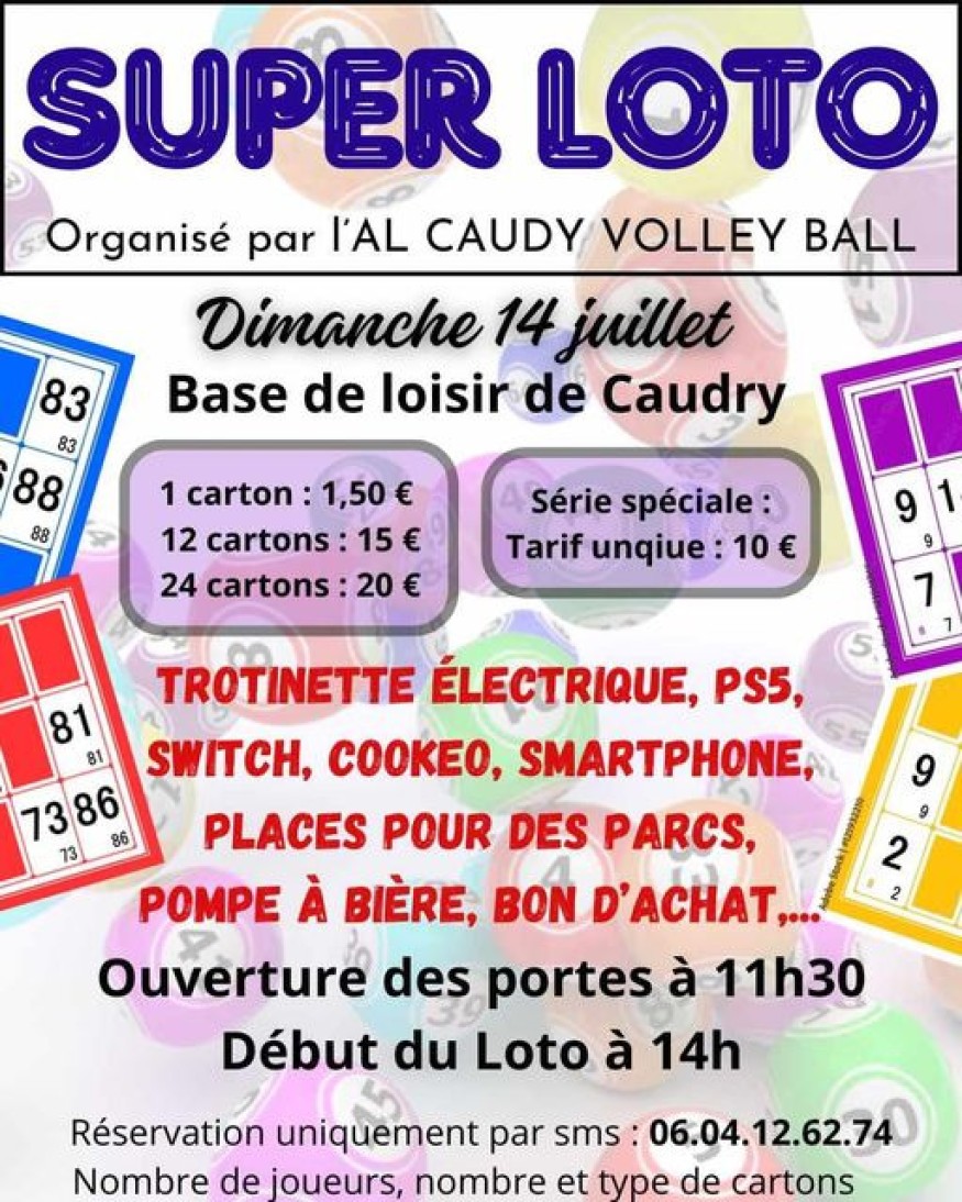Dimanche 14 juillet 2024 ouverture des portes à 11h30 début du Loto à 14h