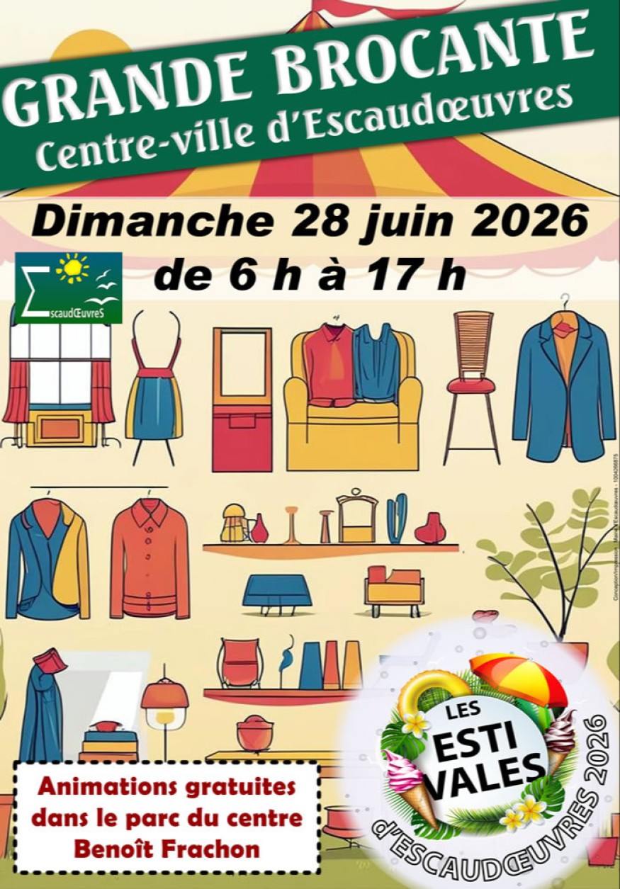 En résumé : Date : Dimanche 28 juin 2026 Horaires : 6 h à 17 h Lieu : Centre-ville d'Escaudœuvres Plus d'infos : Contactez la mairie d'Escaudœuvres.