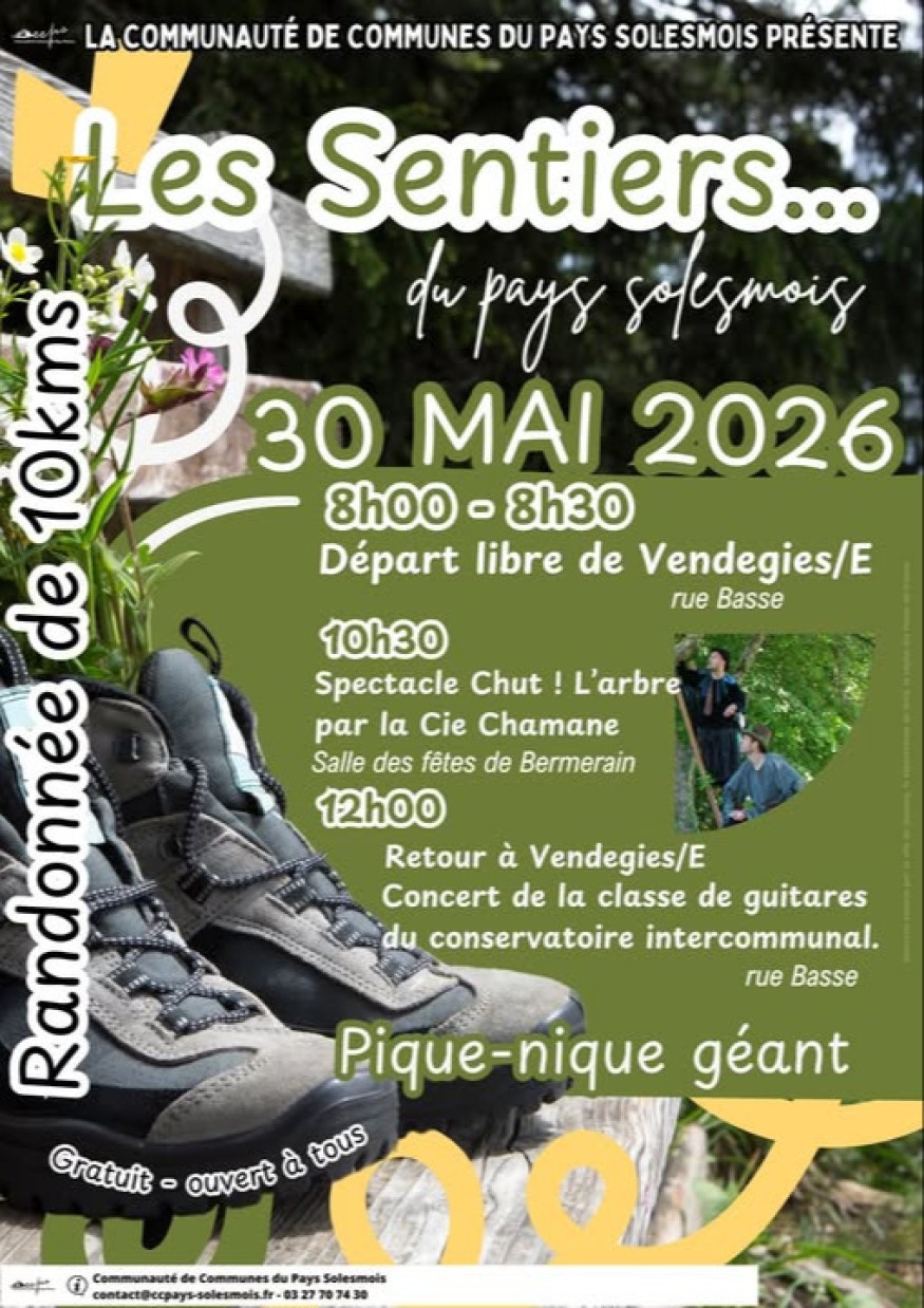 La Communauté de Communes du Pays Solesmois invite les amateurs de plein air et de découvertes culturelles à participer à une nouvelle édition de sa randonnée phare : « Les Sentiers...du Pays Solesmois ». Le samedi 30 mai 2026, un parcours de 10 km attend les marcheurs pour une journée placée sous le signe de la convivialité.