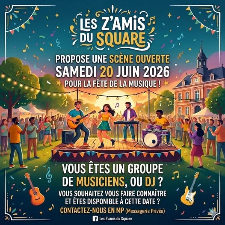 Le samedi 20 juin 2026, la commune vibrera au rythme des festivités de la Fête de la Musique. Pour l’occasion, l’association locale "Les Z’amis du Square" organise une scène ouverte et recherche activement les artistes qui feront l’événement.