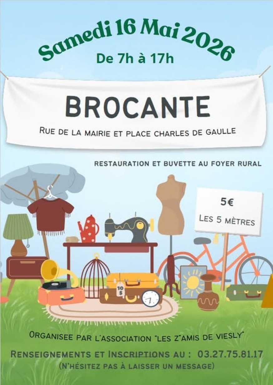 Avis aux chineurs et amateurs de bonnes affaires ! L’association « Les Z’amis de Viesly » organise sa traditionnelle brocante printanière le samedi 16 mai 2026. Un rendez-vous convivial qui animera le cœur du village tout au long de la journée.