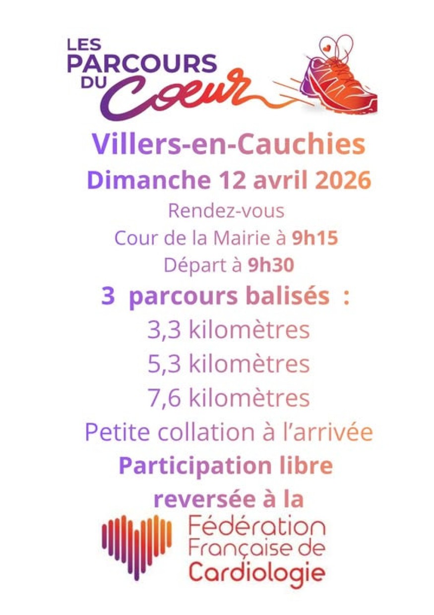 La commune de Villers-en-Cauchies s'apprête à faire battre le cœur de ses habitants. Ce dimanche 12 avril 2026, la municipalité organise une nouvelle édition des « Parcours du Cœur », un événement national relayé localement pour promouvoir l'activité physique et la santé cardiovasculaire.