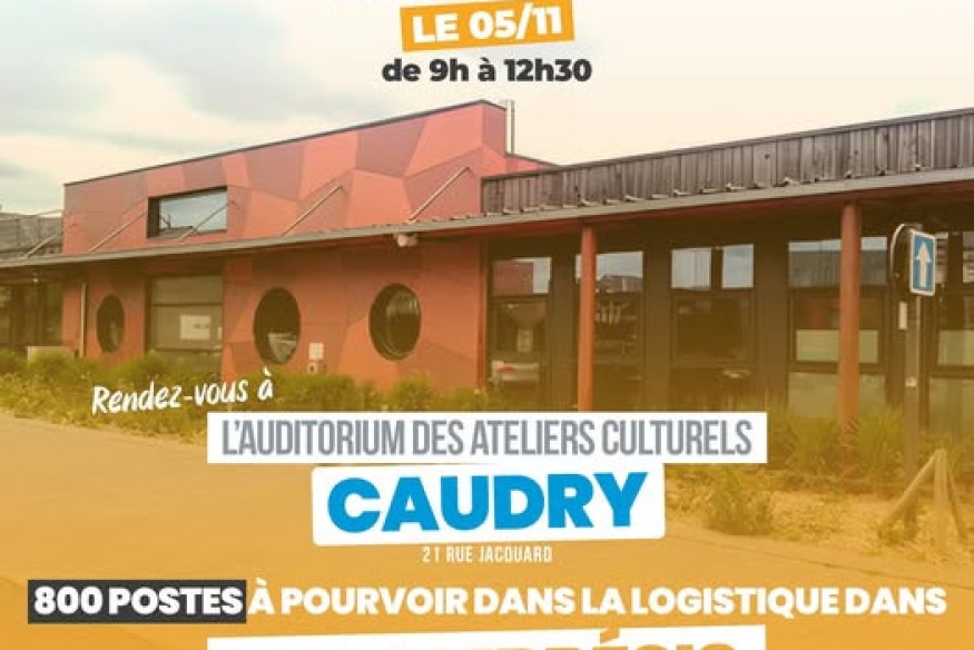 Réunion d'information Collective le mercredi 5 novembre 2025 de 9h à 12h30 Rendez-vous à L'Auditorium des Ateliers Culturels de Caudry 21 rue Jacquard à Caudry 800 Postes à pourvoir dans la logistique dans le Cambrésis...