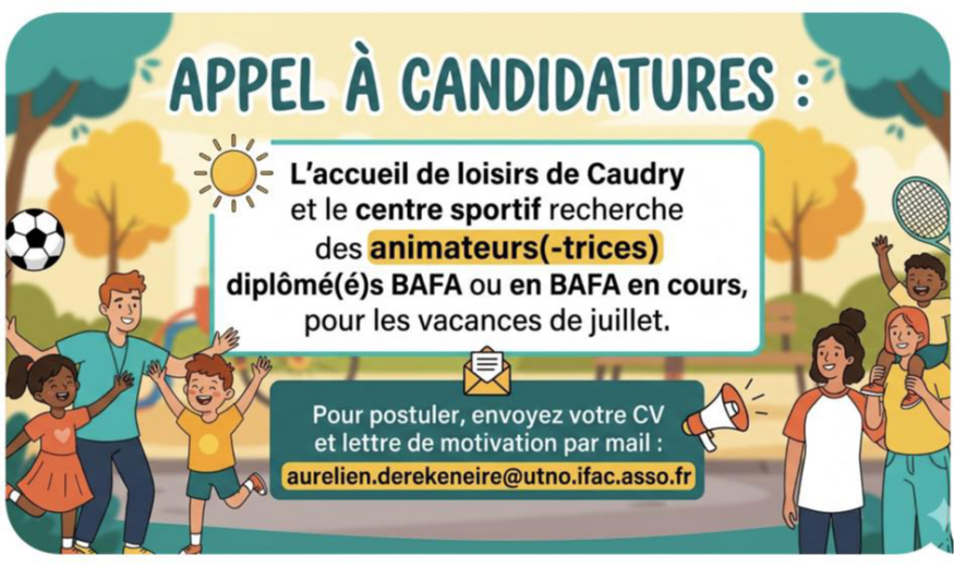 À l’approche des grandes vacances, la ville de Caudry lance sa campagne de recrutement pour encadrer les jeunes durant le mois de juillet. Avis aux animateurs et stagiaires motivés !