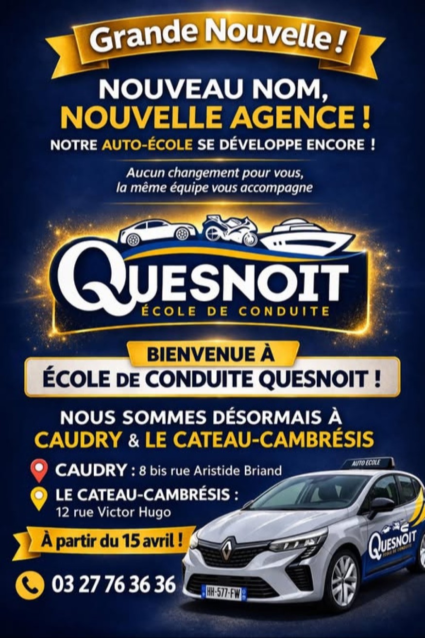 Une nouvelle ère commence pour l’apprentissage de la conduite dans le Cambrésis. Depuis le 1er janvier, l’établissement bien connu des futurs conducteurs opère une transformation majeure : l’Auto-école Stéphane devient officiellement l’École de Conduite Quesnoit.