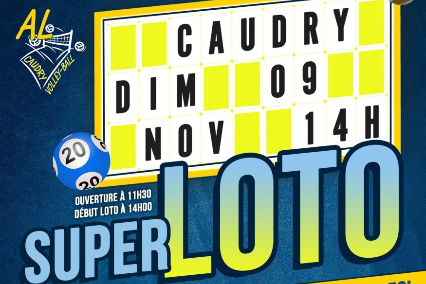 Super Loto de l'AL Caudry Volley-BallDimanche 9 novembre 2025 Ouverture des portes 11h30 - Début du loto 14h Palais des Sports Aurélie Chatelain de Caudry A gagner : Bons d'achat jusqu'à 400€, TV Led 58', Air Fryer, Switch 2 ou bon d'achat de 500€, Platine Vinyle Micro System, Pompe à Bière, Robot patissier, Coffret Pokémon, Plancha xxl, High-Tech, etc etc..... 1 carton : 1,50€, 1...