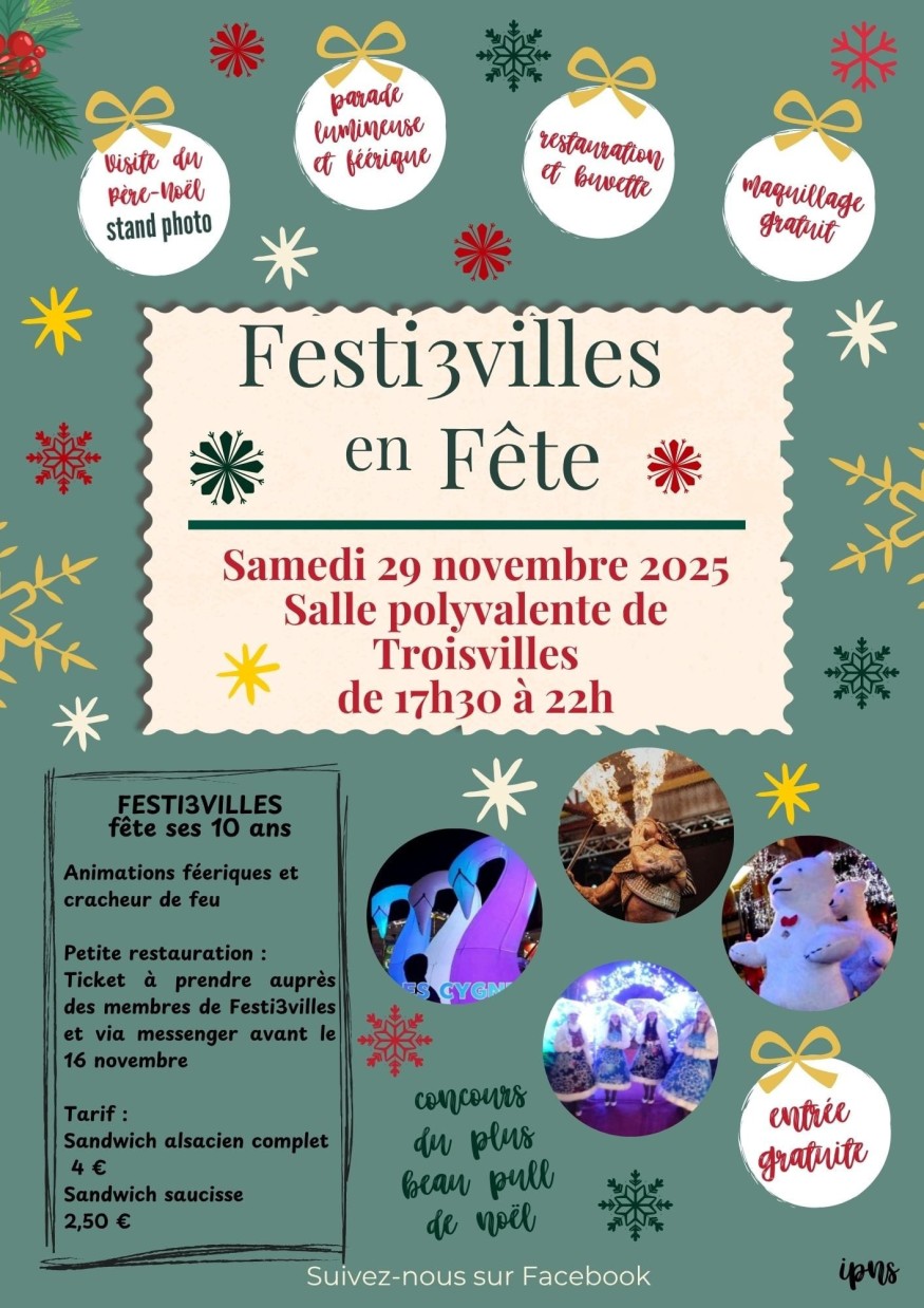 Samedi 29 novembre 2025 de 17h30 à 22h Salle polyvalente de Troisvilles
